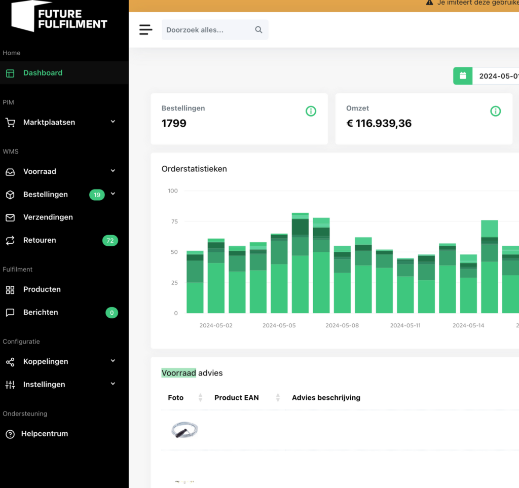 Dankzij dit systeem hoef je niet langer ieder marktplaats apart te beheren. Alle productinformatie, voorraden, verkopen en updates beheer je eenvoudig in het Future Fulfillment platform.
